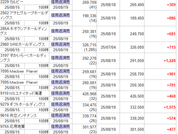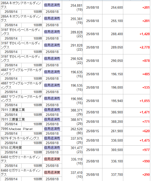 2025.8.15 8/14、8/15の取引取引日記2025.09.028/14 すかいらーく決算で大幅下落のが逆張り買い。セガサミー、なんでこんなに強い?8/15 日経平均が強すぎ、729円高の43337円8/14 +14,3158/15 +9,075今月 +128,107